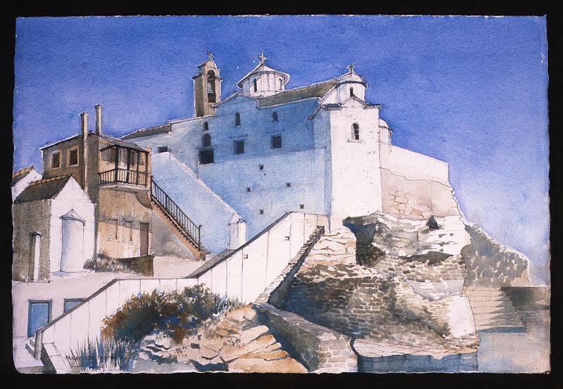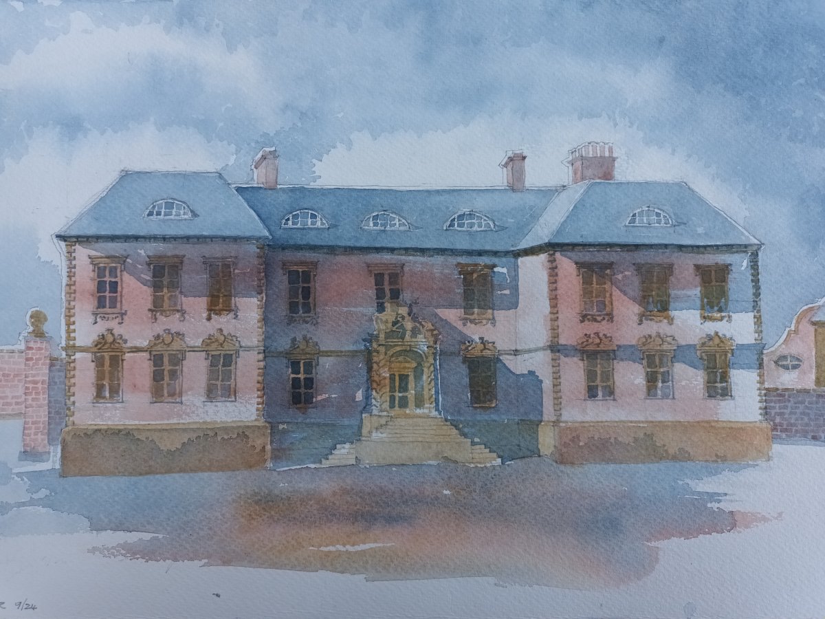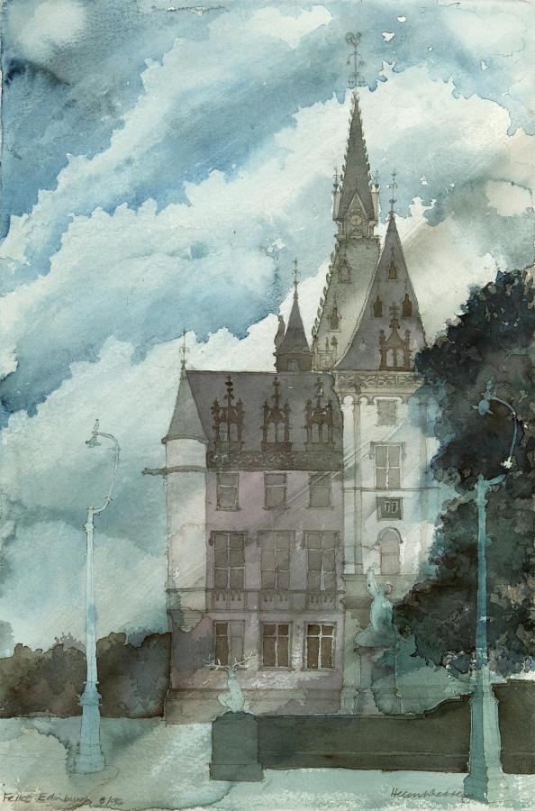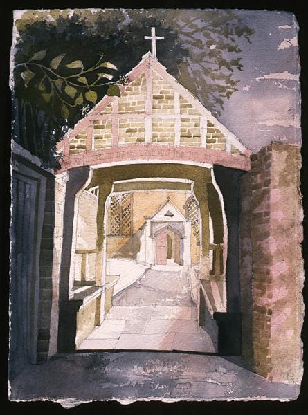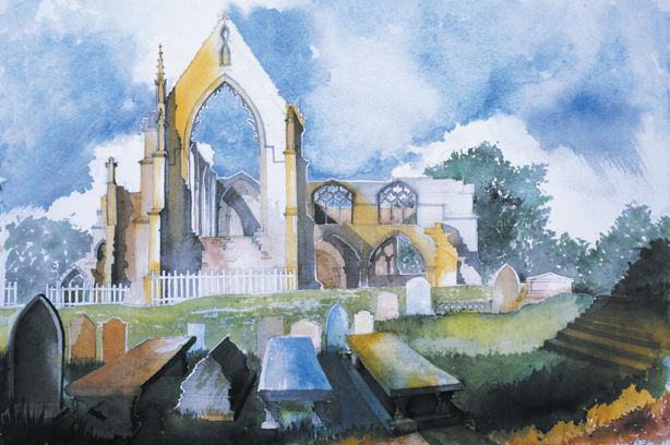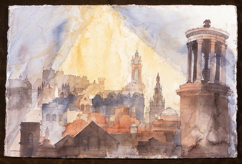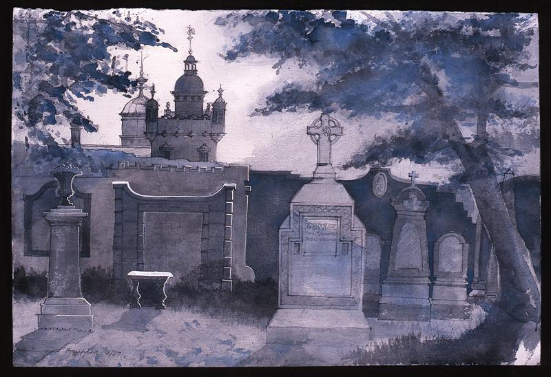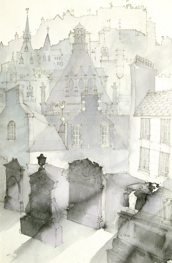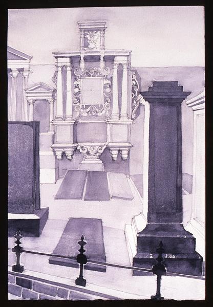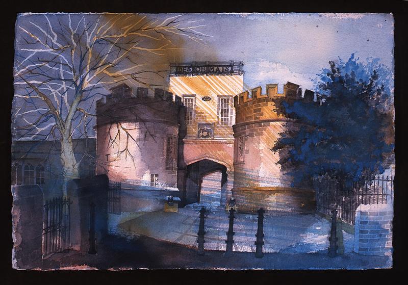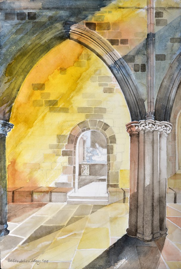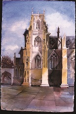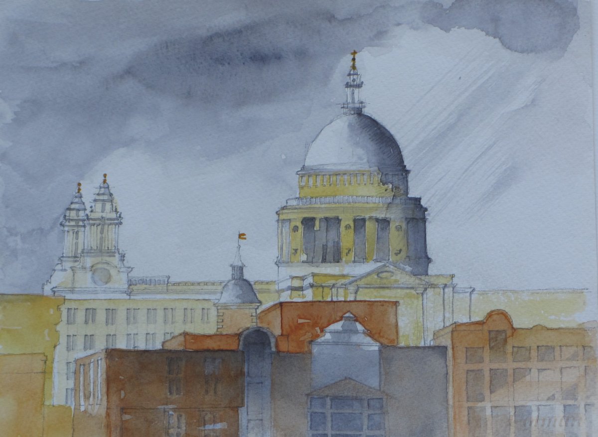 Buildings are endlessly fascinating – the way their surfaces reflect or absorb light, the tiny variations in detailing of a window or a capital are what make the surface of a paining. The structural rules architects have to follow must hold true in a painting, or the viewer feels uneasy without knowing why. The shadows change as the sun shifts and I draw them in all at once at a time when they seem to help the composition. They must be accurate – the eye is a very good computer and you will know if they are wrong.