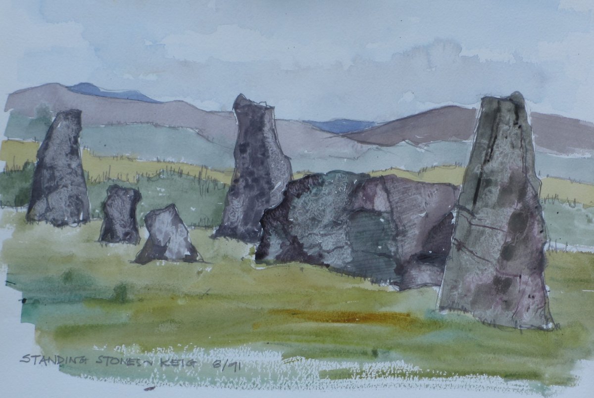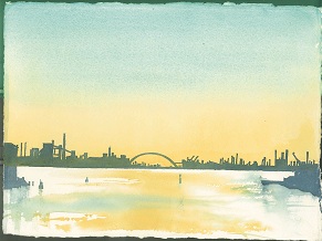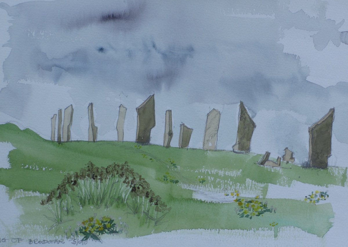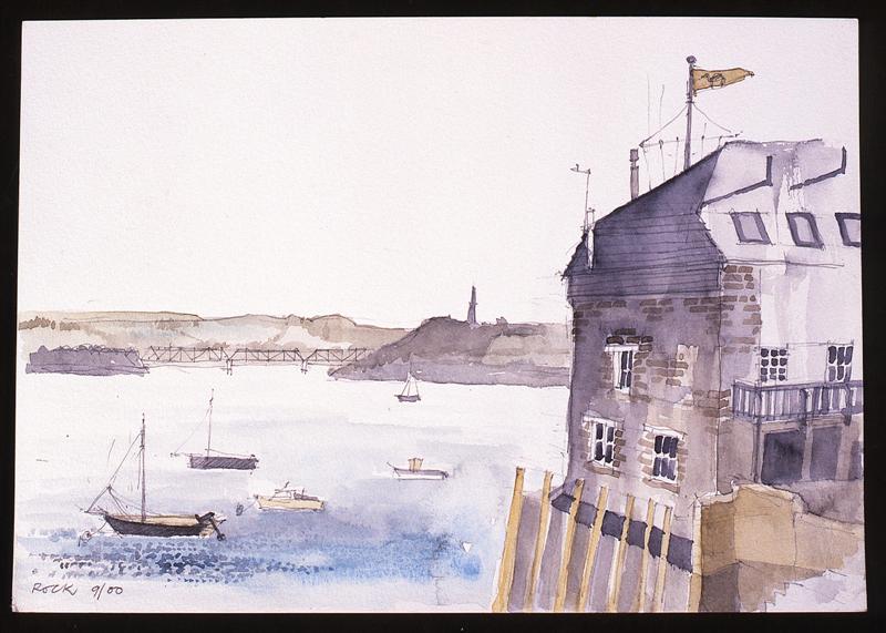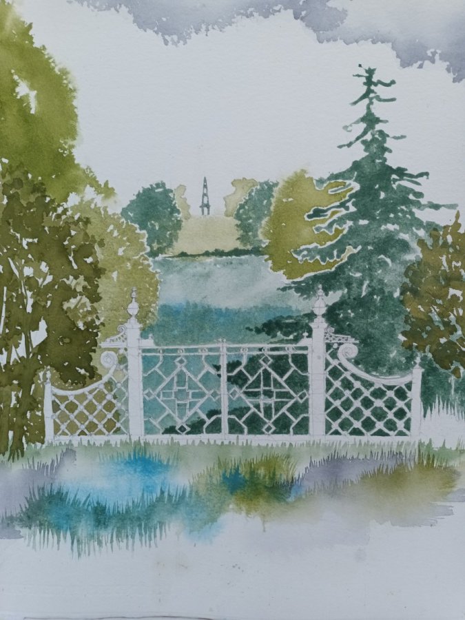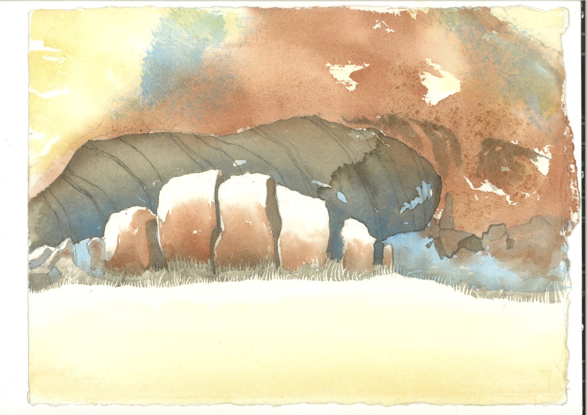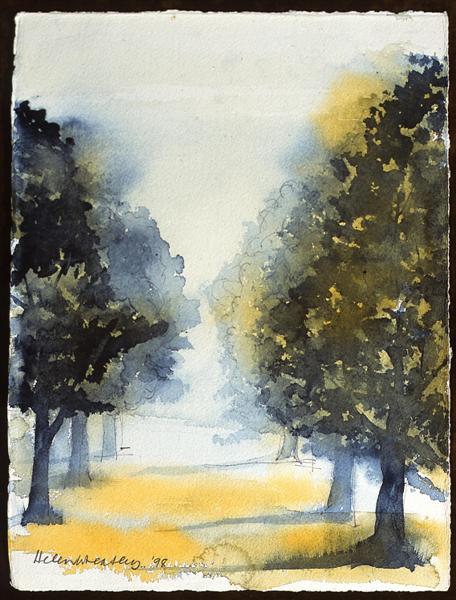 The transient effects of light on sky, sea and foliage are inspiring or tantalizing when I stop looking and try to record them. The translucence of watercolour has a light of its own. White paper is there under the washes to illuminate, and left untouched, to enliven the surface. I need to choose just a few colours. If I put them on in layers, the underneath colour shines through and changes the subsequent colours on top. Sunshine or shadow changes them too.